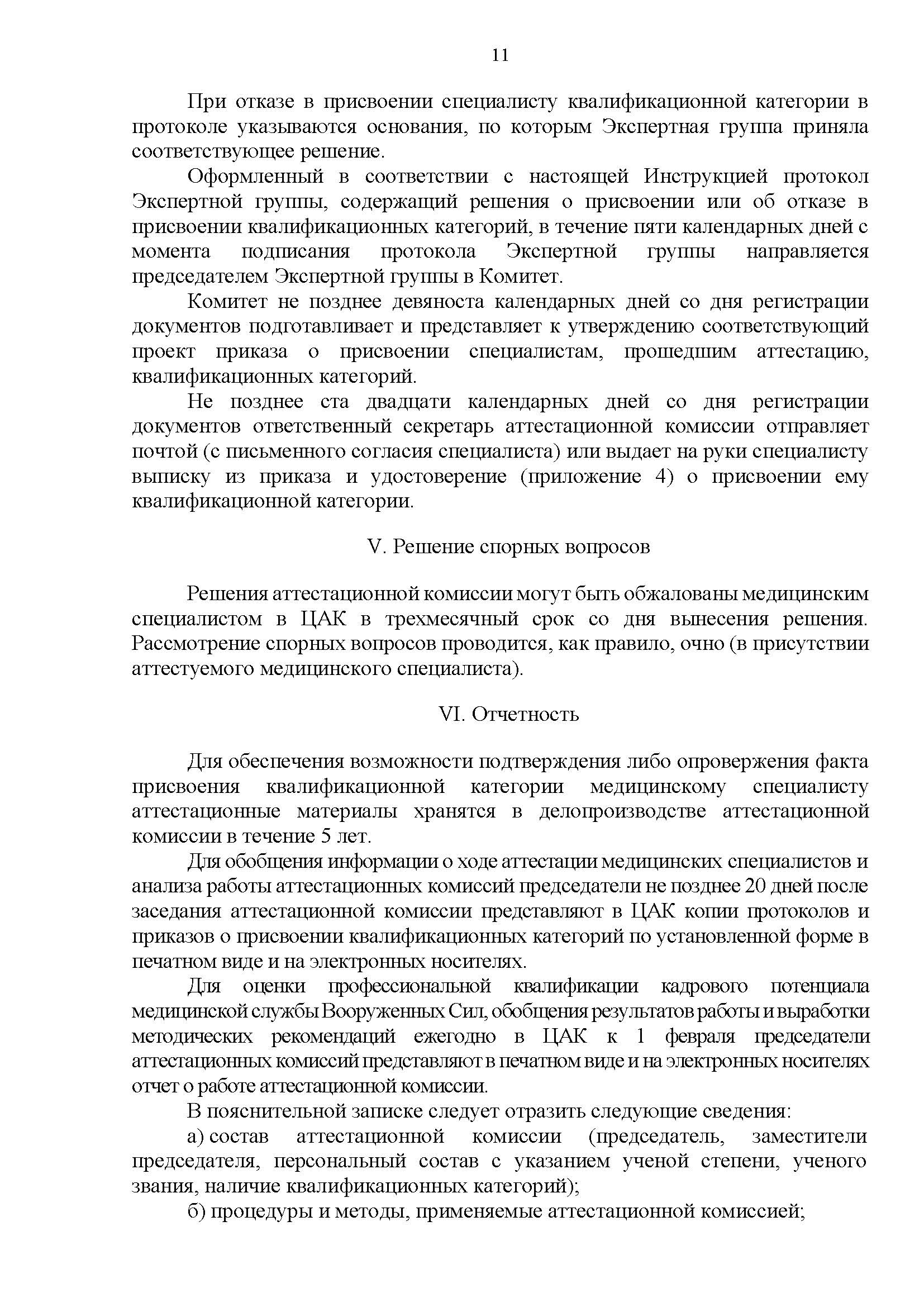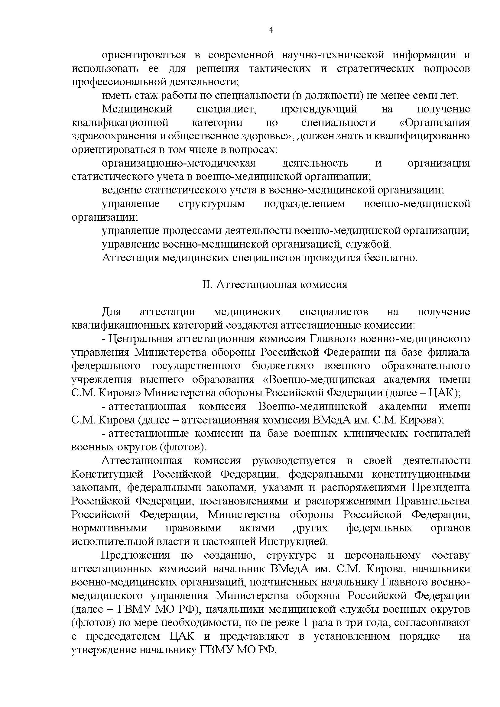 Приказ начальника Главного военно-медицинского управления Министерства обороны Российской Федерации от 12 февраля 2024 г. №11 «Об утверждении Инструкции по проведению аттестации медицинских и фармацевтических работников Вооруженных Сил Российской Федерации для получения квалификационной категории».